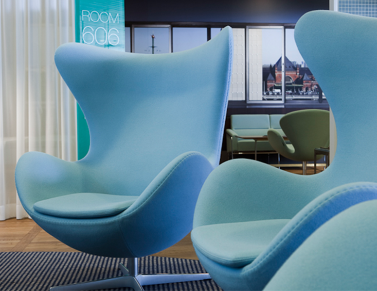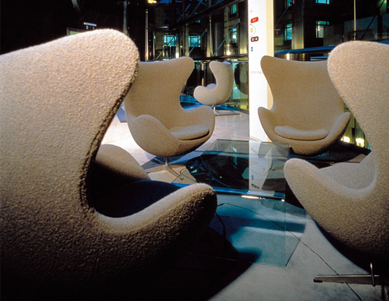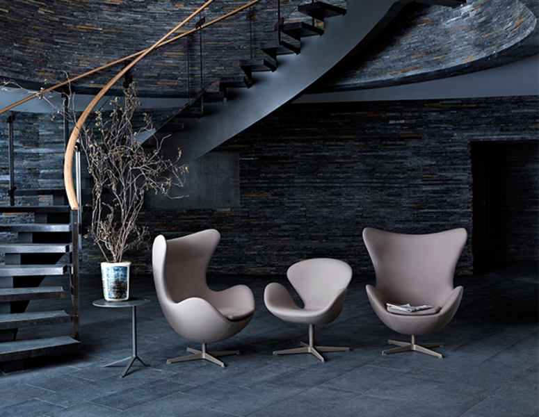 The Egg chair is a classic icon designed by Arne Jacobsen for the Royal Hotel, in Copenhagen. The unique design offers privacy and makes it a perfect solution for lounge areas and home interiors.