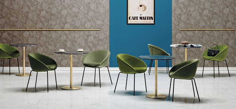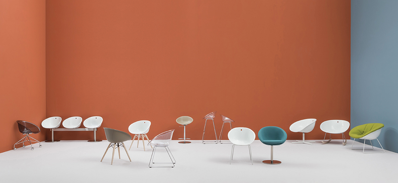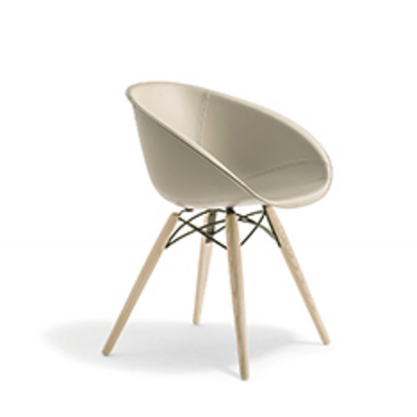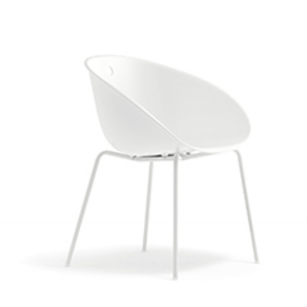 Gliss has a cozy and ergonomic shape which takes its inspiration from iconic chairs of the Fifties, featuring by the distinctive element of the hole in the shell.