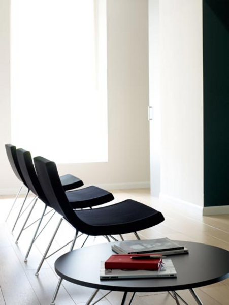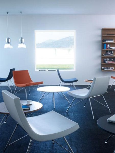 His design, a balanced simplicity, invites you to relax and solves both the wait and the need for informal meetings in your company.