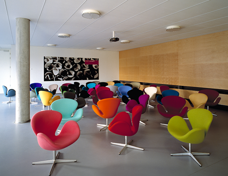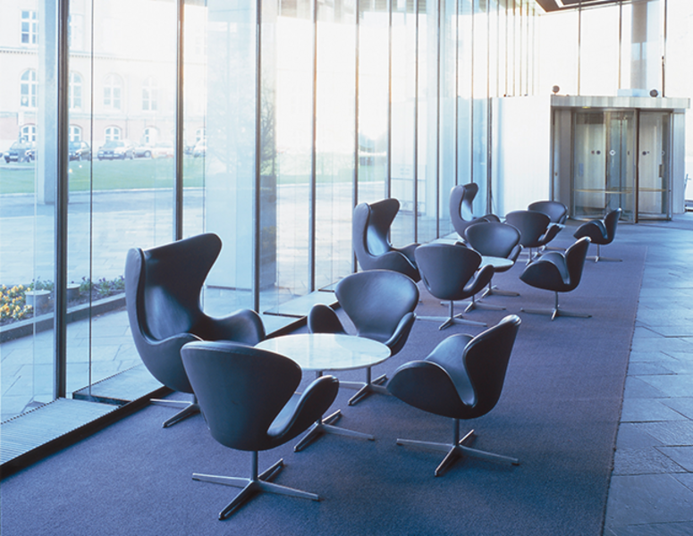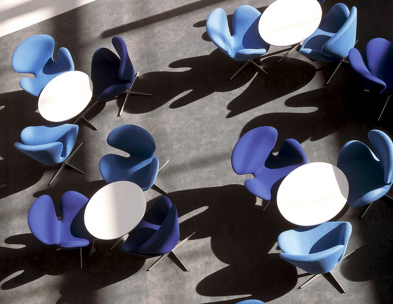 The Swan chair is a classic icon designed by Arne Jacobsen for the Royal Hotel, in Copenhagen together with the Egg Chair. An innovative design that offered curved lines instead of the straight lines typical for the period.