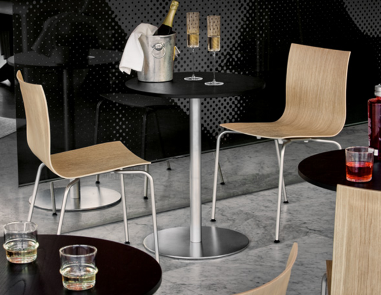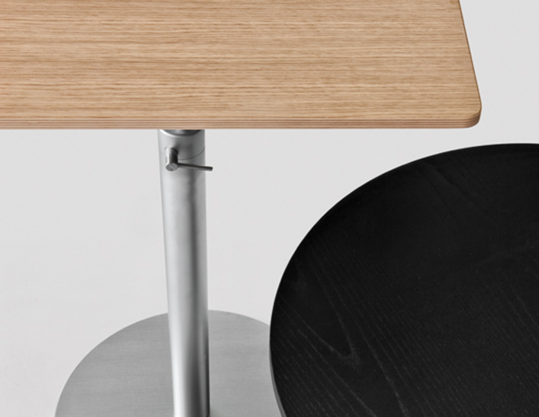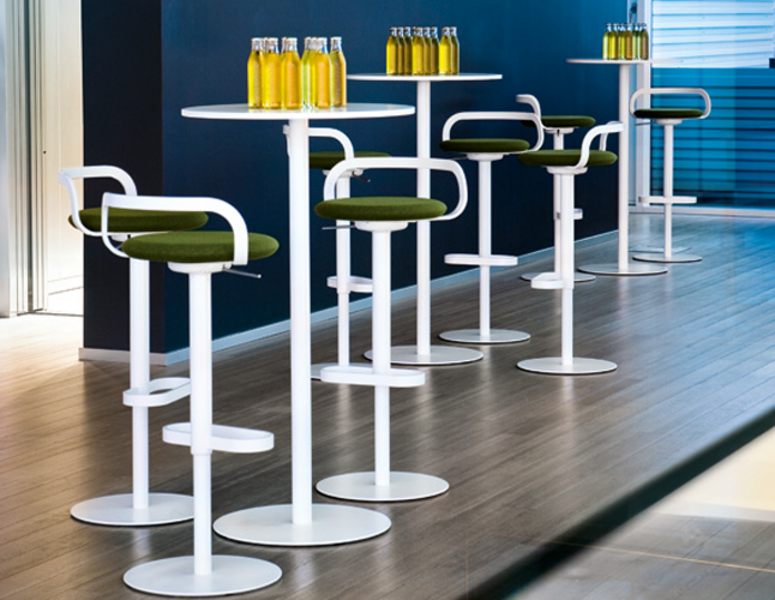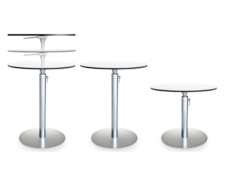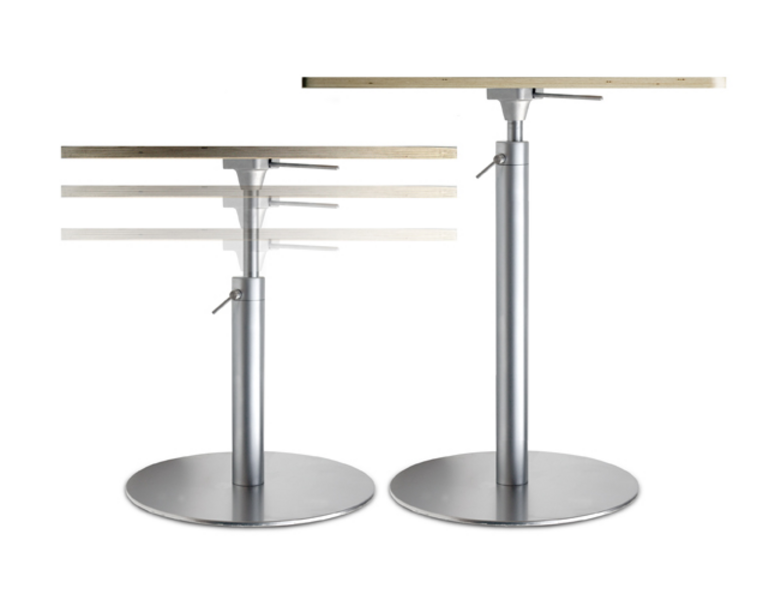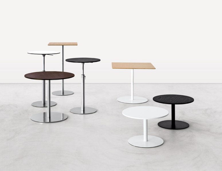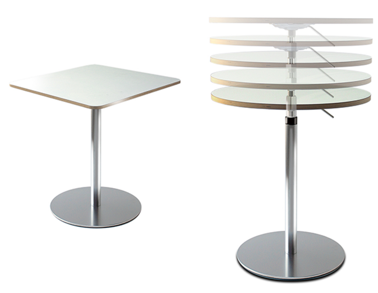Brio is a versatile table that can have a wide range of applications – from canteens and restaurants, to office spaces and lounge areas. The table top can be round or square with a selection of finishes. Brio is height adjustable.