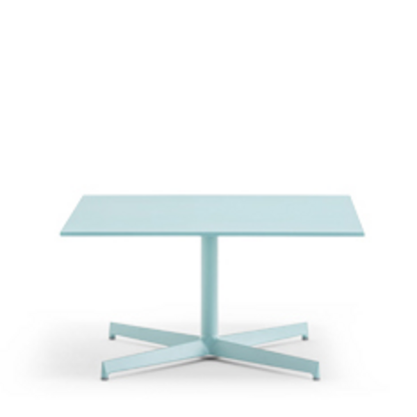 Simplicity of style defines Laja table collection, perfect for both outdoor and indoor use. Table with die-cast aluminium base and steel column. Available combined with tops of different sizes and finishes.