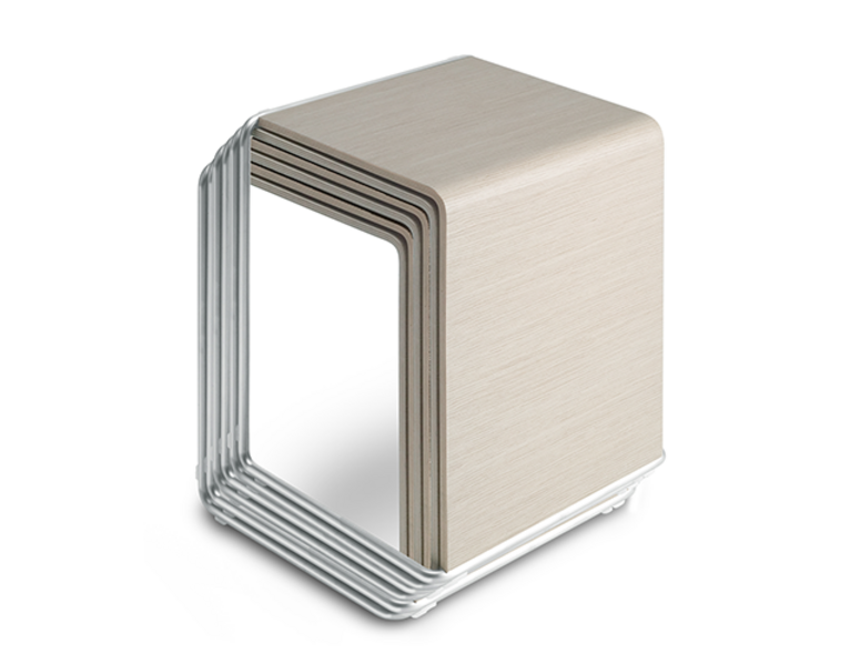 Ueno е повлиян от японския дизайн, който играе с възприятието на линии, повърхности и обем. Многофункционален дизайн, който може да се използва като маса, стол, и който може да бъде поставен един в друг за спестяване на пространство.