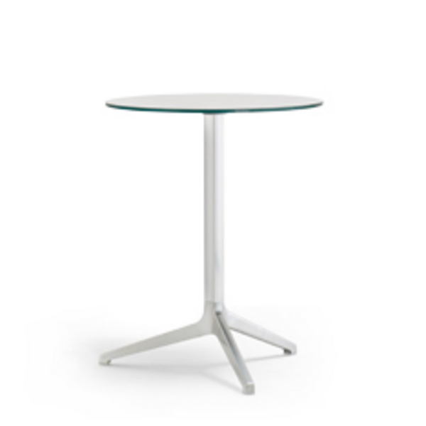 Table with three aluminium legs and extruded aluminium column, available combined with tops of different sizes and finishes.