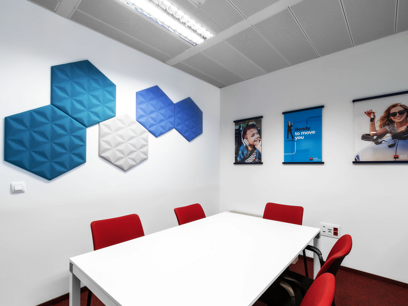 For ALD Automotive Bulgaria we have chosen the acoustic solution BuzziTilein (from the Belgian brand Buzzi Space) in various geometric shapes that capture unnecessary noise and minimize it. These panels are not only functional, but also improve the design of the space in which they are placed.