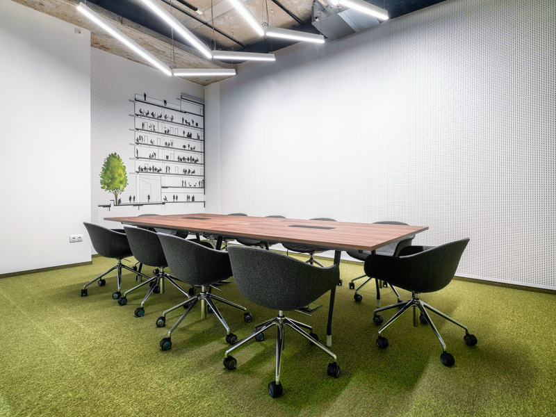 The company's meeting rooms have a very diverse selection of furniture - the chairs Next and Flex chair by Andreu World, Unimesh by Italian manufacturer Sitland, soft seating from Sancal's Sumo series in combination with conical tables Ikon 863 and last but not least – Aback desks from the office furniture leader - Herman Miller.