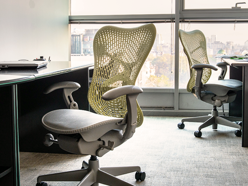 As experts in the health department, their natural choice for their seating was task chairs by the most ergonomic furniture company in the world – Herman Miller and their Mirra chair. Mirra, together with all the chairs in the Herman Miller family was designed to provide constant comfort for 3 shifts, 24 hours a day. The quality of the chairs is highlighted by the 12 year warranty and many design awards. A chair that was designed to fit the user and follow their every movement providing ultimate ergonomic comfort – a concept that certainly complements Quintiles’ mission to ‘Navigate the new health.’