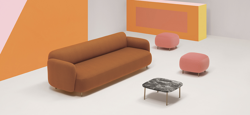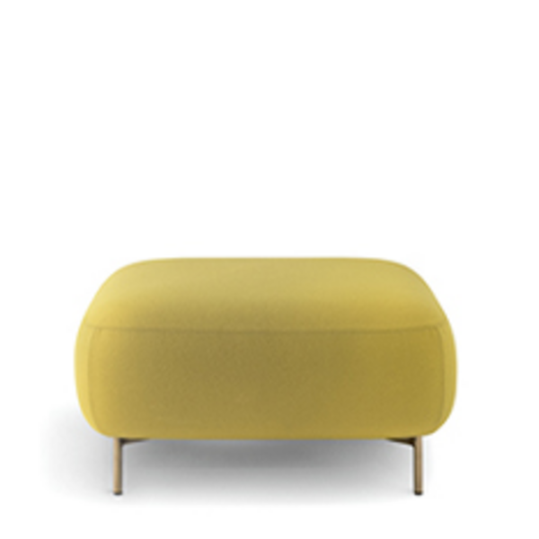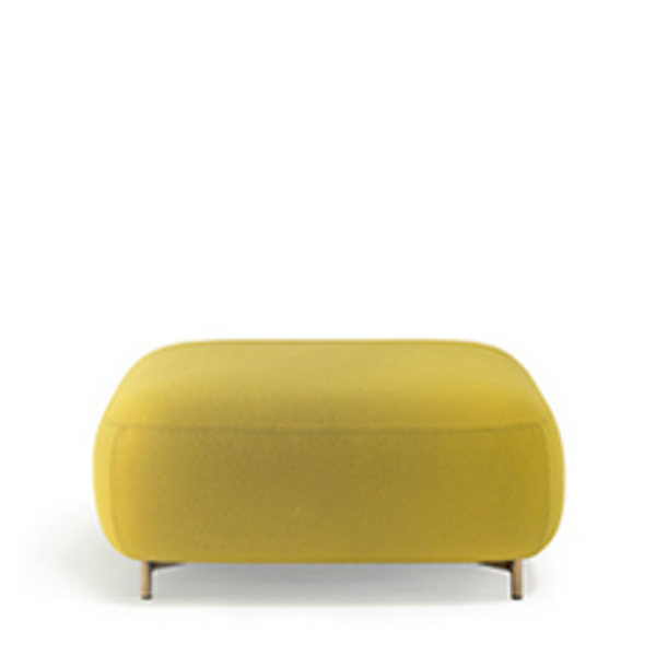 The rounded shape of the pouf with a generous and comfortable upholstery is supported by four thin and rigorous legs Ø20mm. These make the pouf extremely functional and visually lift the volume from the ground. Height 400 mm.