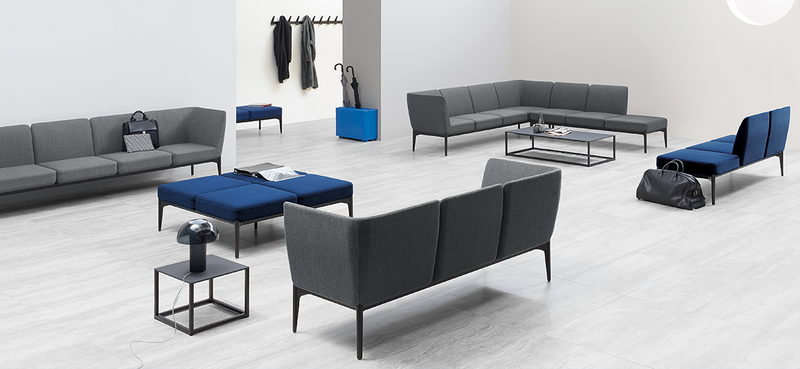 Social е модулна система от линейни, ъглови, извити седалки (45 ° и 60 °) и пуфове. Диван, готов да приеме всякакви социални агрегации.