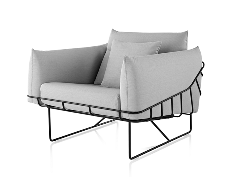 Wireframe is light weight and has various sizes. The external structure is made of steel wire that frames the cushions.
