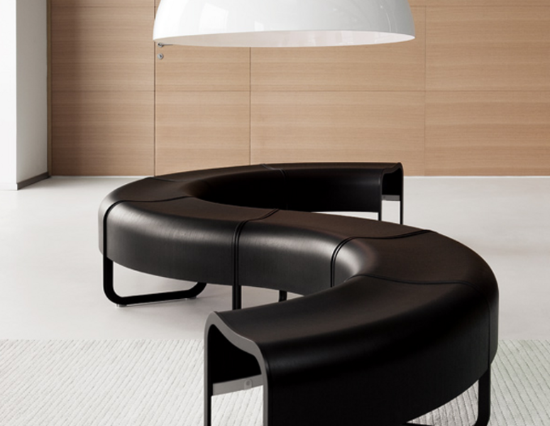 ZA is a modular system that consists of curved and linear elements that can be linked in limitless number of sets consisting of one and two-seater benches and a curved module. The system is stackable and comes in a variety of finishes.